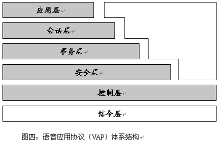 語音應(yīng)用協(xié)議(VAP VA)也有一個類似于TCP/IP和WAP的層次結(jié)構(gòu),如下圖(圖四)所示:
