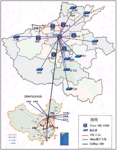 河南省教育科研計算機(jī)網(wǎng)(HERNET)作為中國教育科研計算機(jī)網(wǎng)絡(luò)(CERNET)在河南的省級網(wǎng)絡(luò),提供河南省的教育與科研機(jī)構(gòu)的Internet接入。在CERNET業(yè)已發(fā)展成為中國第二大互聯(lián)網(wǎng)的今天,各省教研網(wǎng)的建設(shè)變得尤為重要,河南省在2001年啟動“教育信息化年”規(guī)劃后,多方合作,采用思科系統(tǒng)(中國)網(wǎng)絡(luò)技術(shù)有限公司的高端網(wǎng)絡(luò)設(shè)備,將原來骨干帶寬僅為2M的教育科研網(wǎng)升級到2.5G,順利實(shí)現(xiàn)了教育科研網(wǎng)絡(luò)應(yīng)用的飛躍性進(jìn)步,并且真正實(shí)現(xiàn)了“三網(wǎng)合一”。