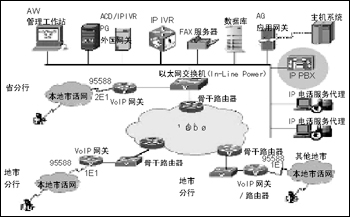 中國(guó)工商銀行甘肅省分行客戶服務(wù)中心的設(shè)計(jì)第一期系統(tǒng)容量為蘭州市為60路中繼接入,其他地(市)根據(jù)客戶容量分別采用30路中繼接入或12路中繼接入。語(yǔ)音接入都采用E1數(shù)字中繼接入方式,以后可以很方便地升級(jí)。省行IP