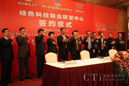CTI論壇(ctiforum)2月3日消息(記者 潘婷):2月3日上午,思科公司與重慶郵電大學正式簽訂合作協(xié)議,共建“重慶郵電大學-思科綠色科技聯(lián)合研究實驗室”!熬G色科技聯(lián)合研究實驗室”的成立是思科履行其致力于推動中國創(chuàng)新和可持續(xù)發(fā)展承諾的重要舉措。此次合作中雙方將共同推動下一代互聯(lián)網(wǎng)、傳感器網(wǎng)絡以及綠色科技等領(lǐng)域的研發(fā),推進應用推廣和產(chǎn)業(yè)化發(fā)展,實現(xiàn)產(chǎn)學研一體化,幫助和支持重慶本土企業(yè)提高綠色科技創(chuàng)新的素質(zhì)和能力,進而支持中國發(fā)展綠色經(jīng)濟、節(jié)能減排的長期戰(zhàn)略。