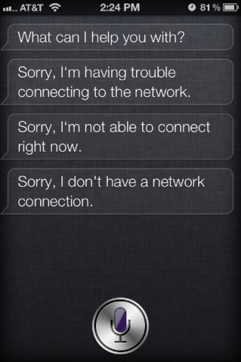 VentureBeat正在與蘋果聯(lián)系以獲取進(jìn)一步的消息,該網(wǎng)站早已致電蘋果客戶服務(wù)中心。盡管他們建議用戶可以重啟WiFi甚至手機(jī),可Siri依然無法連接到服務(wù)器。據(jù)蘋果客服主管反映,這完全可能是因?yàn)檎麄(gè)網(wǎng)絡(luò)已中斷。