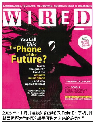 2005年11月,《連線》雜志嘲弄Rokr E1手機(jī),在封面上打出了這樣的標(biāo)題。
