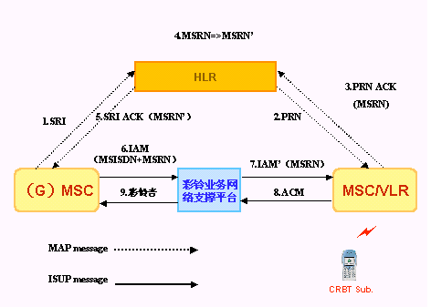 此種方案需要改造MSC交換機,使其支持彩鈴業(yè)務(wù),在HLR中需要對那些開通多彩鈴音業(yè)務(wù)的用戶增加業(yè)務(wù)屬性,并對其進(jìn)行標(biāo)記。