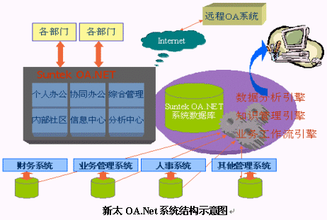 OA.NET采用了應(yīng)用服務(wù)器、群件數(shù)據(jù)庫、關(guān)系數(shù)據(jù)庫三元合一的技術(shù)體系架構(gòu),集成了XML、Web Service等業(yè)界最新技術(shù),能夠在Win2000以及Sun、IBM、HP等多種Unix、Linux環(huán)境下運行,并具有良好的平臺兼容性。OA.NET系統(tǒng)具有高度靈活性、簡單實用性、知識管理解決方案、和業(yè)務(wù)系統(tǒng)的無縫融合、高度的個性化等特色,被業(yè)內(nèi)專家認為代表了最新的辦公自動化發(fā)展水平,并引領(lǐng)著辦公自動化的先進發(fā)展方向。