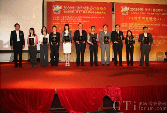 “2009中國呼叫中心產(chǎn)業(yè)峰會(huì)暨2009中國(亞太)最佳呼叫中心”頒獎(jiǎng)典禮于10月15日在北京富力萬麗酒店舉行并取得圓滿成功。本次大會(huì)由中國電子商會(huì)呼叫中心及客戶關(guān)系管理專業(yè)委員會(huì)(CNCCA)主辦,密之云(北京)呼叫產(chǎn)業(yè)基地有限公司協(xié)辦,CTI論壇承辦。同時(shí),大會(huì)還獲得了亞太客服與呼叫中心聯(lián)盟(APCCAL)、上海市呼叫中心與無線尋呼協(xié)會(huì)和北京市通信行業(yè)協(xié)會(huì)呼叫中心專業(yè)委員會(huì)等機(jī)構(gòu)的大力支持。
