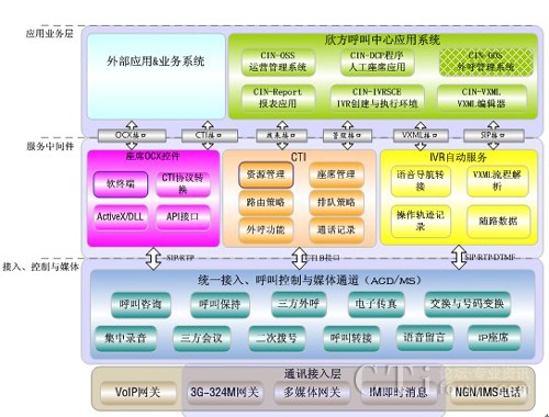 欣方呼叫中心是基于下一代融合網(wǎng)絡(luò)技術(shù)和架構(gòu)的新型呼叫中心平臺(tái),面向PSTN(固定電話網(wǎng))、PLMN(移動(dòng)電話網(wǎng))、3G窄帶視頻和NGN/IMS(軟交換)多種網(wǎng)絡(luò)接入提供多媒體聯(lián)絡(luò)中心系統(tǒng),支持話務(wù)員與客戶之間語(yǔ)音、視頻、傳真、消息等多種通訊方式。系統(tǒng)采用下一代網(wǎng)絡(luò)融合架構(gòu),呼叫平臺(tái)采用SIP信令方式搭建,信令與媒體分離、平臺(tái)與網(wǎng)絡(luò)無(wú)關(guān),支持多種異構(gòu)網(wǎng)絡(luò)環(huán)境接入,支持多種媒體統(tǒng)一排隊(duì)與路由。