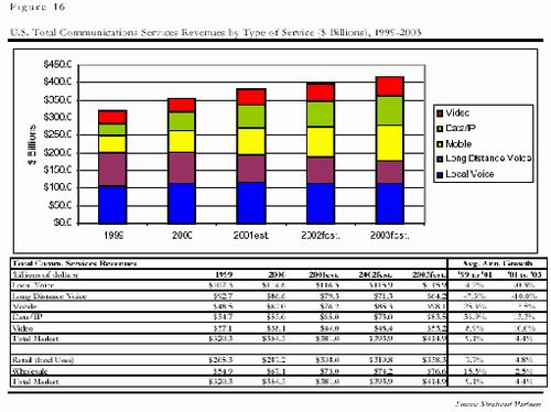 電信市場(chǎng)不是一個(gè)孤立的市場(chǎng),而是由電信服務(wù)和電信制造兩個(gè)緊密相連的市場(chǎng)組成的。電信制造業(yè)不斷進(jìn)行研發(fā)創(chuàng)新,為電信服務(wù)業(yè)提供新的業(yè)務(wù);而電信服務(wù)也利用電信制造業(yè)的新技術(shù),并把這些服務(wù)最終提供給商業(yè)和普通消費(fèi)者兩類用戶。可以說,電信制造業(yè)的發(fā)展在很大程度上是由電信服務(wù)業(yè)決定的。要了解電信制造市場(chǎng)的將來,不得不從電信服務(wù)市場(chǎng)的變化談起!