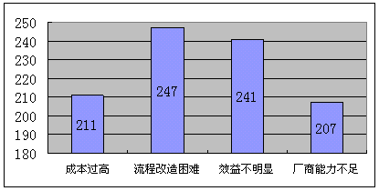 b)流程改造困難,對這個困難的擔(dān)心的企業(yè)數(shù)量最多,考慮到國內(nèi)企業(yè)的現(xiàn)實(shí)管理問題,流程改造必然與現(xiàn)實(shí)的利益發(fā)生矛盾,引起的阻力不可輕視。