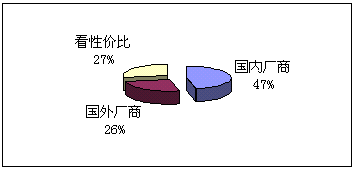 (5)向誰購買:鑒于國內(nèi)并沒有知名度很高的CRM實(shí)施廠商,而國外的著名廠商在國內(nèi)的品牌宣傳也不足,所以我們的調(diào)查表中只設(shè)了:國內(nèi)廠商、國外廠商和根據(jù)性價比進(jìn)行選擇三個項(xiàng)目,與購買能力對照,預(yù)期實(shí)施金額在100萬以下的企業(yè),一般側(cè)重國內(nèi)廠商,而實(shí)施金額在100萬以上企業(yè)則側(cè)重國外企業(yè)。
