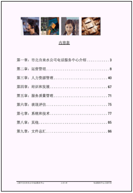 b) 現(xiàn)代客戶服務(wù)中心的管理框架已經(jīng)基本形成。我們?yōu)槭斜弊詠硭蛻舴⻊?wù)中心編輯了一套呼叫中心運(yùn)營(yíng)管理手冊(cè),其中分為經(jīng)理版和客戶服務(wù)代表版,其中包含了呼叫中心的規(guī)章制度,運(yùn)作流程,人力資源管理等內(nèi)容。
