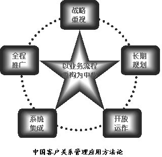 通過對金融業(yè)應用案例的大量研究,CRCC發(fā)現(xiàn),只有將全流程先進管理和一體化客戶關系管理結合起來,才能保證金融企業(yè)在競爭和獲得關鍵客戶之后,具備為其提供貼身、增值金融服務、創(chuàng)新金融產品的能力。這套實施規(guī)則即“1+5”實施規(guī)則。