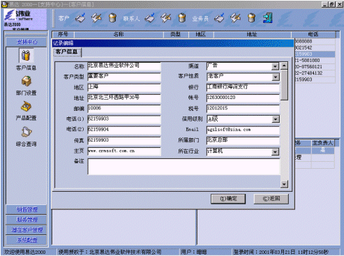 附:有關易達 2000 CRM軟件界面: