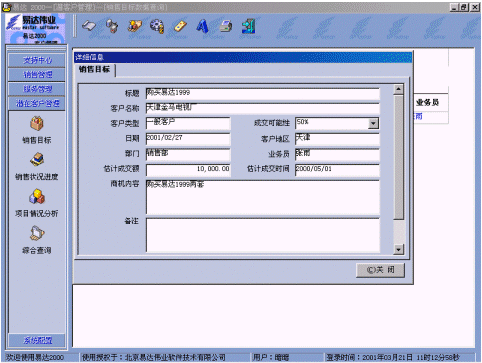 | 易達2001 CRM 助北京維康瑞提升客戶關系 2001-11-28 |