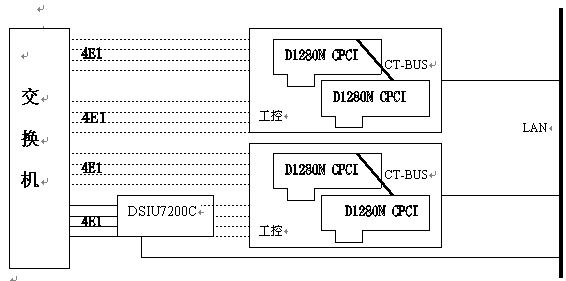 業(yè)務(wù)交換點(diǎn)(SSP)功能可由東進(jìn)公司高性能的網(wǎng)關(guān)DSIU7200U和數(shù)字卡D1280N CompactPCI配合完成。系統(tǒng)配置方式靈活,性能穩(wěn)定,升級(jí)擴(kuò)容方便,易于開發(fā),為客戶提供高性價(jià)比解決方案。