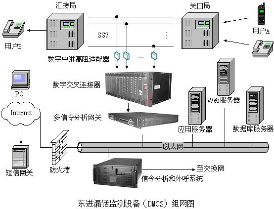東進(jìn)漏話監(jiān)測設(shè)備(DMCS)采用大容量、高穩(wěn)定的電信級的基礎(chǔ)平臺,其中數(shù)字交叉連接器和多信令分析網(wǎng)關(guān),都采用標(biāo)準(zhǔn)的19英寸機(jī)架設(shè)計(jì),便于客戶的安裝和使用,設(shè)備單平臺最大可同時(shí)接入64個(gè)E1,平臺利用東進(jìn)公司核心的信令采集技術(shù)、語音媒體處理和交換技術(shù),提供全程中國七號信令,支持ISUP信令方式,具有較穩(wěn)定的信令可靠性和接續(xù)速度。平臺采用與短信網(wǎng)關(guān)連接的解決方案,支持與SMC和SMG兩種連接方式。