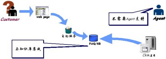 自助服務(wù):實際上,客戶咨詢的很多問題都屬于FAQ。對于這類問題,Quintus WebCenter提供“自助服務(wù)”,用戶無須客服代表的幫助,即可快速獲得答案,這一方面可減少企業(yè)客服代表的數(shù)量,另一方面提高了用戶咨詢的響應(yīng)速度。此外,CRM的管理人員可通過FAQ管理加入新的FAQ,或去掉過時的FAQ。