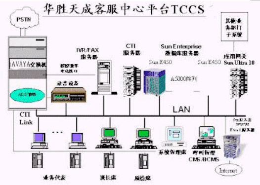 以下是華勝天成基于AVAYA的呼叫中心結(jié)構(gòu)圖: