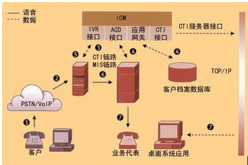 CTI (Computer Telephony Integration 計(jì)算機(jī)電信集成) 技術(shù)將計(jì)算機(jī)網(wǎng)和電話網(wǎng)連接在一起,把語音和數(shù)據(jù)服務(wù)集成為一體,使得構(gòu)造數(shù)據(jù)和語音的融合應(yīng)用得以實(shí)現(xiàn)。例如,由于CTI技術(shù)的引入,當(dāng)用戶來話時(shí),呼叫中心能根據(jù)用戶的呼叫信息如ANI(主叫號(hào))結(jié)合數(shù)據(jù)庫迅速地識(shí)別用戶,實(shí)現(xiàn)“彈屏”功能;當(dāng)電話轉(zhuǎn)接時(shí),實(shí)現(xiàn)語音數(shù)據(jù)的同步轉(zhuǎn)移;根據(jù)所獲得的客戶信息及其他相關(guān)信息將來話路由到最適合服務(wù)的座席等。CTI技術(shù)包含了數(shù)據(jù)通信與語音通信兩大部分的內(nèi)容,關(guān)注的不僅僅是將基于計(jì)算機(jī)的智能技術(shù)運(yùn)用到電話的發(fā)送、接收及管理,還要考慮各種媒體類型的信息傳送,包括實(shí)時(shí)信號(hào)和非實(shí)時(shí)信號(hào),如傳真、電子郵件和視頻信號(hào)等。