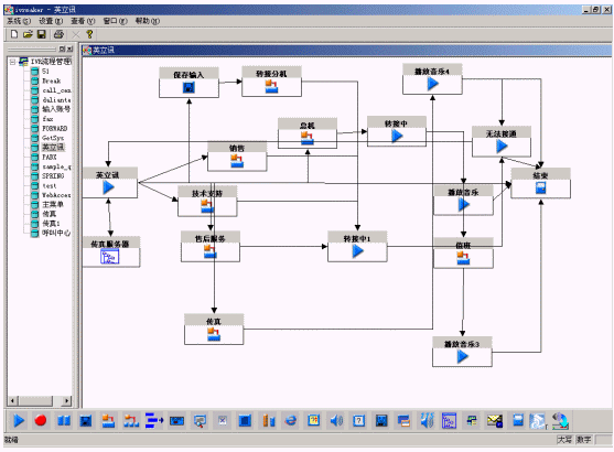 IVR Maker是一個圖形化的業(yè)務(wù)流程生成環(huán)境,通過它可以生成新的IVR自動業(yè)務(wù)流程或維護(hù)舊的流程,生成的流程能夠在線調(diào)試,調(diào)試好的流程可以在線加載到IVR上運(yùn)行。