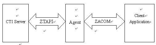 通常呼叫中心的座席軟件都需要用戶定制,以便在標(biāo)準(zhǔn)的座席功能上加入業(yè)務(wù)處理功能,并且要求能與業(yè)務(wù)系統(tǒng)交換數(shù)據(jù)。用戶可以利用ZTAPI接口直接定制自己的座席軟件,也可以使用Agent軟件自帶的COM開發(fā)接口來實現(xiàn)同樣的功能。后者是一種更便捷的機(jī)制,因為可以直接使用ZingServ®標(biāo)準(zhǔn)的座席軟件--Agent的座席功能,用戶可以把更多的精力投入到業(yè)務(wù)處理功能,使用ZACOM要求使用時需運(yùn)行Agent軟件。ZACOM開發(fā)結(jié)構(gòu)示意圖如下: