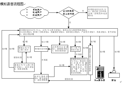 - 本系統(tǒng)的服務(wù)內(nèi)容包括:企業(yè)與政府部門簡介,產(chǎn)品與服務(wù)簡介,人工服務(wù),轉(zhuǎn)部門分機(jī),呼叫轉(zhuǎn)移,部門直線電話號碼查詢,質(zhì)量與服務(wù)投訴,錄音留言等。