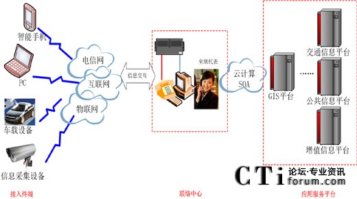 應用服務平臺:以GIS平臺為主,配合交通信息平臺、公共信息平臺以及餐飲酒店娛樂信息服務平臺、社交網(wǎng)站服務平臺、車輛服務信息平臺、應急救援服務平臺、媒體內(nèi)容服務平臺等各類型的應用服務,根據(jù)應用需求提供相應的服務和數(shù)據(jù)。各應用服務通過云計算、SOA、數(shù)據(jù)總線等技術實現(xiàn)互聯(lián)互通、信息共享,同聯(lián)絡中心應用集成,并通過聯(lián)絡中心向用戶提供服務。