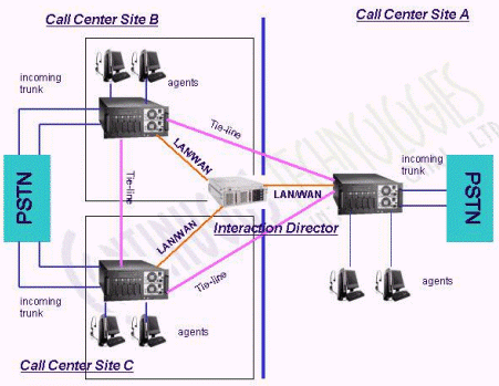 Interaction Director的功能比Interaction Multi-Site還要強(qiáng)大的多,不但支持Interaction Multi-Site的具有的功能外,還支持更大規(guī)模的分布式系統(tǒng)、呼叫前和呼叫后路由(呼叫前路由采用SS7信令,需要電信運(yùn)營商的支持)以及真正的網(wǎng)絡(luò)排隊(duì)機(jī)(Network ACD)等。Interaction Director通常安裝在一臺(tái)單獨(dú)的服務(wù)器上,用來決定最佳分布點(diǎn)的系統(tǒng)處理來電。Interaction Director可以實(shí)時(shí)監(jiān)控各個(gè)分布點(diǎn)的系統(tǒng)負(fù)載,坐席、技能、隊(duì)列等狀態(tài)。采用Interaction Director可以方便的實(shí)現(xiàn)分布式呼叫中心系統(tǒng)的負(fù)載均衡和災(zāi)難備份。舉例來說,在周末話務(wù)量較小的情況下,為節(jié)省資源和運(yùn)營成本,可以將北京中心的所有來電路由至上海中心處理;又如,上海中心發(fā)生故障,可以將所有來電路由至北京中心處理。