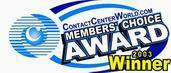 “用戶最佳選擇獎”專門頒發(fā)給呼叫中心方面的最佳公司、解決方案或軟件,獎項(xiàng)由所有呼叫中心的使用者投票評選而得。ContactCenterWorld.com