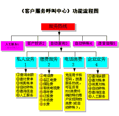 上圖是整個《銀行客戶服務呼叫中心》的主功能流程圖
