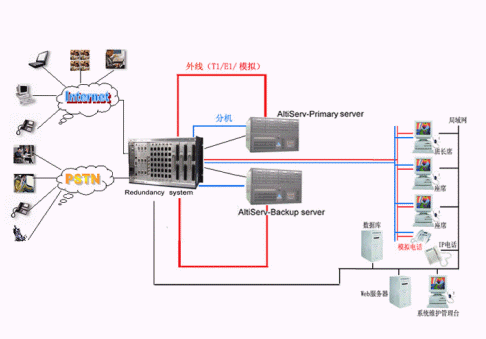 奧迪堅全球領先的CTI平臺的供應商和IP分布式呼叫中心的領導者,在技術上不斷創(chuàng)新,對產品精益求精,尤其體現(xiàn)在對系統(tǒng)的運行安全性的要求上,為了防止電信接入設備或者企業(yè)網絡出現(xiàn)故障而造成的呼叫中心服務中斷,奧迪堅呼叫中心系統(tǒng)提供安全保護冗余切換系統(tǒng),來保障呼叫中心在意外情況下的正常工作,該安全冗余切換系統(tǒng)通過對電源、T1/E1、模擬trunk、分機座席、以及各種網絡鏈路串口等備份切換來實現(xiàn)可靠的運行。除此之外,奧迪堅系統(tǒng)本身也提供強大的安全保障,由于采用先進IP內核一體化設計,集傳統(tǒng)PBX、CTI服務器、IVR、ACD、Recording、FAX等眾多設備于一體,這樣有效的避免了因為外掛設備過多以及設備供應商的不同而存在的兼容性的問題,從而降低了給呼叫中心系統(tǒng)帶來的的不穩(wěn)定的安全隱患。在系統(tǒng)之外依靠安全保護冗余切換系統(tǒng),可以實現(xiàn)外線、分機、以及各種鏈路接口的雙倍安全運行。當啟用了冗余功能,并且已經激活了主服務器,系統(tǒng)會將所有的許可協(xié)議,配置,語音信箱文件以及客戶短語等復制到次服務器上。