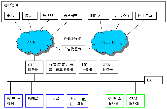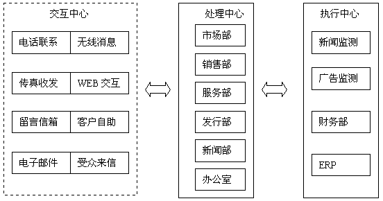 大多數媒體單位都提供自己的新聞線索熱線電話,廣告熱線電話,許多媒體擁有自己的宣傳網站,有的媒體單位率先建立起呼叫中心,提供7*24的服務。有些觀點錯誤地認為CRM是呼叫中心的附屬品,因而不能充分發(fā)揮CRM的強大功效,讓整個單位以客戶為中心協(xié)同運作,提高競爭力。