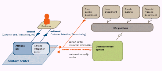 在線銀行要求Altitude Software推薦一個適合的和集成的解決方案。替代建議昂貴的EAI(企業(yè)應用集成)平臺,Altitude推薦使用標準的網(wǎng)絡(luò)服務(wù)技術(shù),與Altitude uCI產(chǎn)品完全兼容。