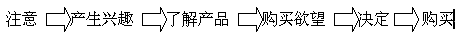 另外在其它的銷售渠道上,如電視、廣播、報(bào)紙等,他們對(duì)市場(chǎng)目標(biāo)的準(zhǔn)確度都是不高的,因?yàn)檫@樣的原因,也無(wú)法對(duì)目標(biāo)市場(chǎng)作掌控和測(cè)試,雖然他們可以很快速的擴(kuò)展市場(chǎng),對(duì)市場(chǎng)產(chǎn)生很大的響應(yīng)力,但如果沒有很好的市場(chǎng)營(yíng)銷與品牌整體性和長(zhǎng)期性規(guī)劃,也很快的會(huì)變成曇花一現(xiàn),歷史中的記憶,這些渠道的成本也是最高的,所以不是所有的企業(yè)都能一體適用的,尤其是中小型企業(yè)是無(wú)法長(zhǎng)期負(fù)擔(dān)的。誠(chéng)如在之前的文章里面分析所講的,最好的銷售效果是一拉一推的力量,用多媒體感官性及理性的獲取消費(fèi)者的注意力,再配合快速效能的主動(dòng)銷售,往往能將營(yíng)銷的效果提升到最高的層面。將到這兒,就不得不順帶提到消費(fèi)者購(gòu)買的行為模式。我們將消費(fèi)者對(duì)購(gòu)買的心理和行為分為幾個(gè)階段:
