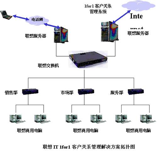 。。其實(shí)早在1998年,公司就開始了企業(yè)信息化管理的嘗試。公司建設(shè)了自己的局域網(wǎng),并開發(fā)出了專門的軟件系統(tǒng)。所有的客戶信息都要求錄入到這套系統(tǒng)中,銷售人員的工作記錄和銷售業(yè)績(jī)也要在系統(tǒng)中進(jìn)行登記。只是這套系統(tǒng)的基礎(chǔ)數(shù)據(jù)還是以Word、Excel文檔的形式分別存在,且中間的數(shù)據(jù)缺乏統(tǒng)一接口,無法動(dòng)態(tài)地反映公司整體的運(yùn)營(yíng)情況,很快就無法適應(yīng)公司業(yè)務(wù)發(fā)展的需要。在這種情況下,公司決定引進(jìn)規(guī)范的客戶關(guān)系管理系統(tǒng)。經(jīng)過多方比較之后,公司選擇了聯(lián)想的IT 1for1客戶關(guān)系管理解決方案。