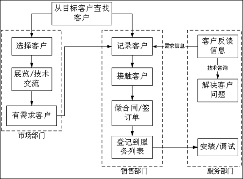 公司從很早就認(rèn)識(shí)到經(jīng)營(yíng)中存在的這些問題,一直在尋找解決的方法和途徑。我們逐漸認(rèn)識(shí)到,公司經(jīng)營(yíng)亟待解決的問題就是如何高效地處理客戶信息、有效地進(jìn)行客戶關(guān)系的管理,這是影響到公司能否獲得更大發(fā)展的關(guān)鍵。因?yàn)樵诠緞倓偲鸩綍r(shí),業(yè)務(wù)人員面對(duì)的是很少的客戶群,他們對(duì)每個(gè)客戶的具體情況非常熟悉,能夠根據(jù)每個(gè)客戶的不同需求特點(diǎn)提供相應(yīng)的產(chǎn)品和服務(wù)。而公司的管理人員面對(duì)的也是很少的業(yè)務(wù)人員,他們可以清楚地掌握每個(gè)業(yè)務(wù)人員的工作情況,并有針對(duì)性的加以監(jiān)督管理。公司的業(yè)務(wù)部門設(shè)置相對(duì)簡(jiǎn)單,彼此的溝通和配合也比較容易進(jìn)行。這時(shí)候幾乎不存在客戶的管理問題。但當(dāng)公司的業(yè)務(wù)成倍增長(zhǎng)后,業(yè)務(wù)人員和客戶的數(shù)量都空前膨脹,這時(shí)候簡(jiǎn)單的管理手段就承擔(dān)不了如此沉重的管理任務(wù),公司的經(jīng)營(yíng)就會(huì)出現(xiàn)混亂。突出的表現(xiàn)就是客戶、業(yè)務(wù)人員失控,公司的業(yè)務(wù)拓展陷入無序狀態(tài),失去繼續(xù)增長(zhǎng)的動(dòng)力。在這種情況下,要使公司的經(jīng)營(yíng)走出泥潭,必須要引入的就是先進(jìn)的客戶關(guān)系管理的觀念和手段。
