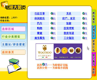 上海IPTV還提供了兩大個性化應(yīng)用:影像空間和電視大黃頁。在影像空間中,攝像愛好者可以利用該應(yīng)用平臺上傳自己的視頻作品,然后通過IPTV機頂盒在電視上欣賞自己的得意之作,并可以與已安裝IPTV的親朋好友一起分享。電視大黃頁也為廣大用戶提供了區(qū)域、行業(yè)、企事業(yè)單位信息資訊的搜索查詢,生活、休閑、購物、商旅,一切盡在掌握。