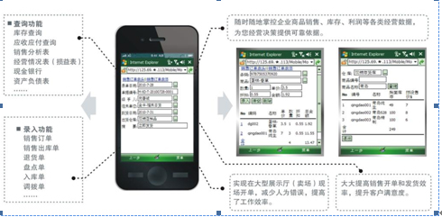 應(yīng)時(shí)代潮流和中小企業(yè)對移動(dòng)商務(wù)應(yīng)用的需求,自2010年,任我行軟件公司開始研發(fā)針對中小企業(yè)的移動(dòng)商務(wù)系統(tǒng),幾經(jīng)探索之后,于2011年推出了穩(wěn)定、安全、應(yīng)用流暢的管家婆手機(jī)版。通過管家婆手機(jī)版,管家婆軟件用戶可以通過終端設(shè)備(手機(jī)、PDA或數(shù)據(jù)采集器)上網(wǎng),訪問管家婆軟件后臺(tái)系統(tǒng),隨時(shí)隨地處理業(yè)務(wù),查詢各種經(jīng)營數(shù)據(jù)。基于用戶操作習(xí)慣,管家婆移動(dòng)商務(wù)分為B/S版和C/S版,其移動(dòng)系統(tǒng)的應(yīng)用涵蓋了OA、查詢報(bào)表、審核、簡單錄入以及快速錄單、掃描錄入等多個(gè)方面,所有的數(shù)據(jù)自動(dòng)與系統(tǒng)實(shí)時(shí)同步。移動(dòng)商務(wù)幫助企業(yè)擺脫時(shí)間、空間、地點(diǎn)的辦公限制,讓用戶可以隨時(shí)隨地靈活處理相關(guān)工作。