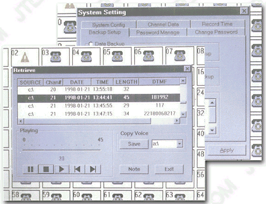 每個(gè)電話通道都有自動(dòng)增益(AGC)功能,可解決長(zhǎng)途電話、國(guó)際電話、或偏遠(yuǎn)地區(qū)電話信號(hào)不良等問(wèn)題。采用數(shù)字化錄音有效避免了傳統(tǒng)磁帶式錄音易失真、難保存的缺點(diǎn)。先進(jìn)的錄音系統(tǒng)設(shè)計(jì),使通話雙方覺(jué)察不到正在錄音或監(jiān)聽。 錄音文件為.VOC格式,同時(shí)也可隨意的向前、向后的移動(dòng)。 |