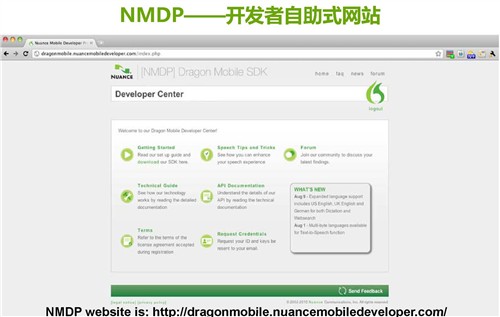 Gary:參加Nuance移動(dòng)開(kāi)發(fā)項(xiàng)目的開(kāi)發(fā)商可以在我們的專(zhuān)門(mén)網(wǎng)站下載SKD,可以用我們的API,在其移動(dòng)應(yīng)用集成可以有語(yǔ)音的功能,用我們的后臺(tái)的語(yǔ)音的技術(shù)。在90天內(nèi)進(jìn)行接入和測(cè)試是免費(fèi)的。這個(gè)項(xiàng)目推出3個(gè)月內(nèi),已經(jīng)有2500多家的開(kāi)發(fā)商注冊(cè)參加這個(gè)項(xiàng)目,F(xiàn)在在美國(guó)的好幾家,比如說(shuō)賣(mài)書(shū)的,用戶(hù)可以在他們的網(wǎng)站上面用語(yǔ)音去搜索書(shū)的名字,或者購(gòu)買(mǎi)的名字。