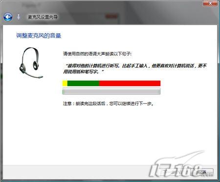 圖6 你必須對著麥克風說話,這樣Windows才能夠自動適應你的音量
