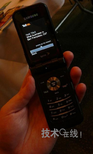 Tellme by Mobile服務現(xiàn)在為β版。首先,在手機上運行的、約200KB的J2ME支持客戶端軟件錄制用戶說出的檢索關鍵詞。然后,將錄制好的約2~3KB的語音數(shù)據(jù)轉(zhuǎn)發(fā)至Tellme運營的服務器。接著,服務器端便會識別來自語音文件的檢索關鍵詞,實際執(zhí)行檢索處理,并將結果以文本數(shù)據(jù)的形式返給客戶端。另外,還可將檢索結果與在線地圖等信息聯(lián)動。Tellme稱,利用了可獲得適于小屏幕手機的檢索結果的算法。