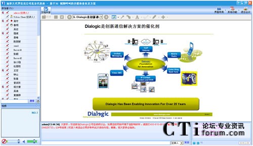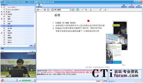 作為最早將3G語音視頻技術(shù)引入中國的世界級(jí)技術(shù)提供商,Dialogic在語音應(yīng)用和3G視頻一直具有領(lǐng)先競爭力。在此次“基于3G視頻呼叫的多媒體業(yè)務(wù)及方案”網(wǎng)絡(luò)研討會(huì)上,Dialogic中國區(qū)技術(shù)總監(jiān)陳益斌,以音視頻的在線直播方式,親身向與會(huì)觀眾講解Dialogic基于3G視頻呼叫的業(yè)務(wù),以及與3G數(shù)據(jù)業(yè)務(wù)的區(qū)別等前瞻3G視頻技術(shù)。