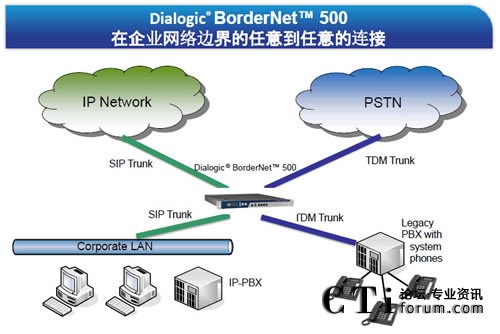 Dialogic® BorderNet™ 500在企業(yè)網(wǎng)絡(luò)邊界的任意到任意的連接