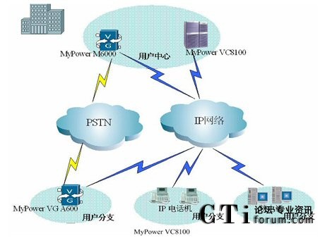 在用戶中心部署MyPower VC8100 IP通信服務(wù)器,同時(shí)部署MyPower M6000媒體網(wǎng)關(guān),在用戶分支機(jī)構(gòu)部署邁普公司小型媒體網(wǎng)關(guān)、IP電話機(jī)及軟電話,構(gòu)建以SIP協(xié)議為基礎(chǔ)的高擴(kuò)展性VOIP協(xié)同通信平臺(tái)。