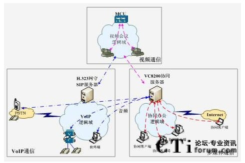 強(qiáng)大的系統(tǒng)融合能力:可以與傳統(tǒng)H.323的電視電話會議系統(tǒng)互通,以較低的成本把電視電話會議的音視頻延伸至基層;還可以與傳統(tǒng)的IP電話網(wǎng)融合,使用戶通過PSTN電話也能訪問協(xié)同服務(wù)器,隨時隨地實(shí)現(xiàn)音頻參加會議。