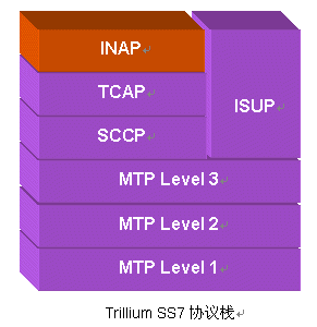 Trillium的SS7產(chǎn)品非常齊全,窄帶SS7產(chǎn)品包括ISUP、TUP、INAP、TCAP、TCAP over TCP/IP、SCCP、MTP3、MTP2、MTP1;Trillium的寬帶SS7產(chǎn)品包括B-ISUP、MTP3-B、Q.2140、Q.SAAL(SSCOP)、AAL5。此外,Trillium還提供無(wú)線領(lǐng)域的SS7產(chǎn)品,包括GSM和IS-41 MAP, CAP(CAMEL Application Part)。
