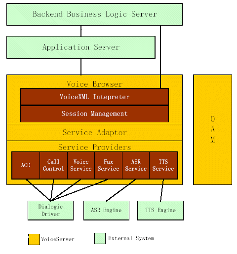 系統(tǒng)支持在VoiceXML中使用客戶定制的業(yè)務組件。