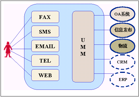 ·UMM(Uni Message Manager ) 統(tǒng)一消息管理,它有兩個任務(wù),一個是根據(jù)外部傳過來信息的不同,交給后臺不同的信息處理系統(tǒng)處理,另一個是將后臺不同的信息處理系統(tǒng),根據(jù)需要通過不同的媒介發(fā)布給用戶