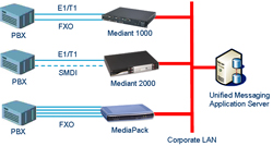 通過利用語音識別和一些新一代技術(shù),使用臺式機(jī)、移動(dòng)設(shè)備或普通電話就可以對系統(tǒng)進(jìn)行統(tǒng)一訪問。 對于此類系統(tǒng),可以在 PBX 和 UM 服務(wù)器之間插入 AudioCodes 網(wǎng)關(guān),從 TDM 變換到統(tǒng)一消息傳遞系統(tǒng)選擇使用的 VoIP 協(xié)議:SIP。