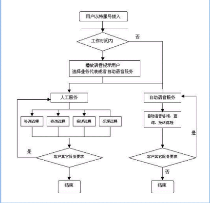 客戶也可以選擇自動語音服務(wù)方式,根據(jù)系統(tǒng)的語音提示輸入按鍵,選擇類別,將自己所需要的服務(wù)要求以及自己的聯(lián)系方式信息以留言錄音的方式保存在系統(tǒng)中。系統(tǒng)同時還支持自動傳真方式,客戶可以通過傳真機(jī)進(jìn)入本系統(tǒng),通過按鍵選擇傳真方式,將所需要的服務(wù)要求等的文本內(nèi)容傳真給系統(tǒng),系統(tǒng)自動接受并存入數(shù)據(jù)庫。